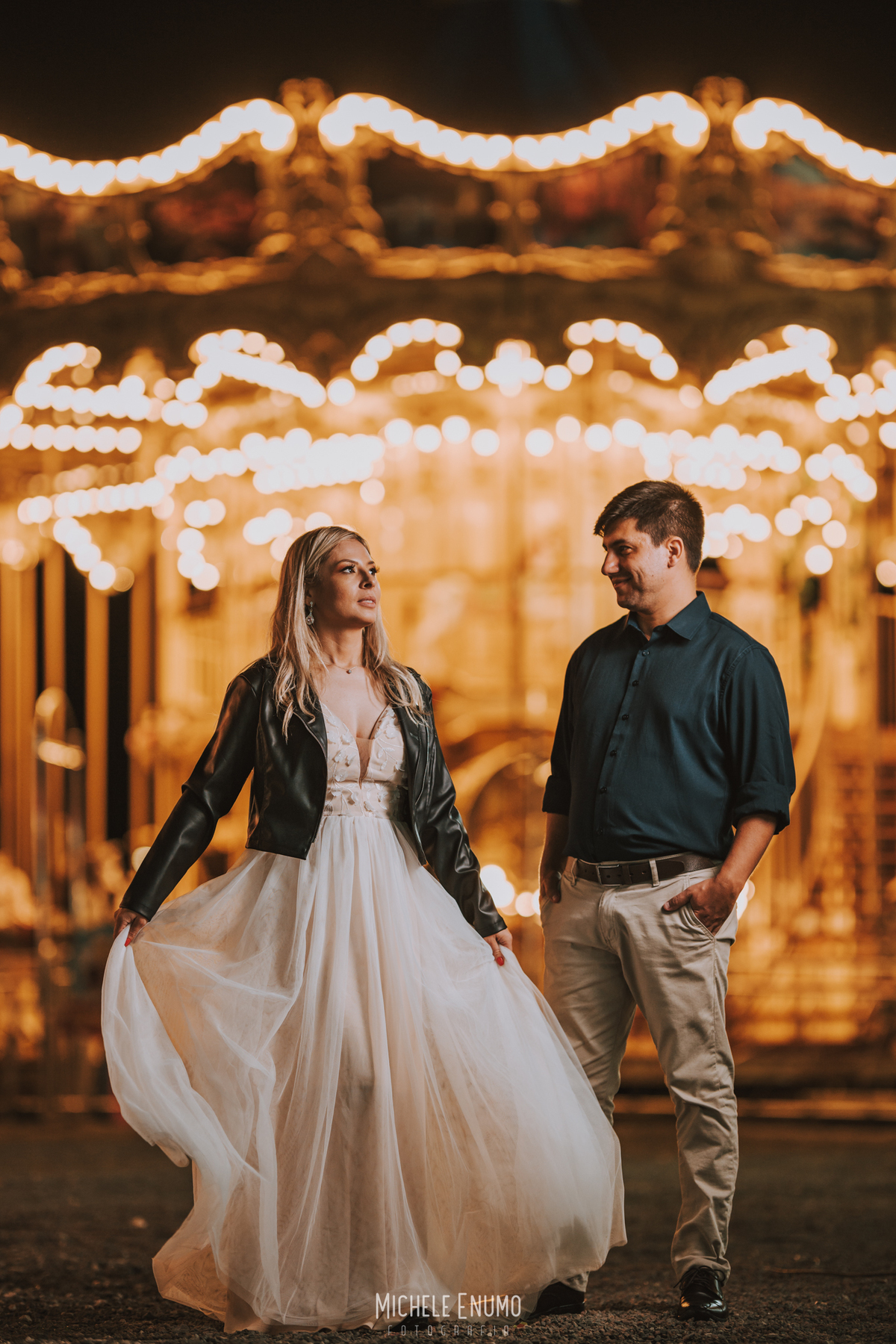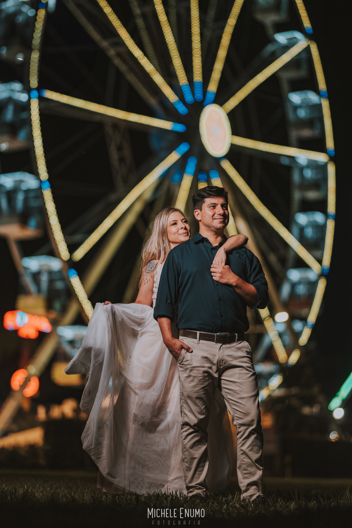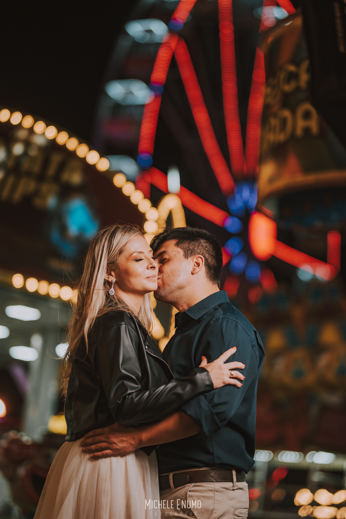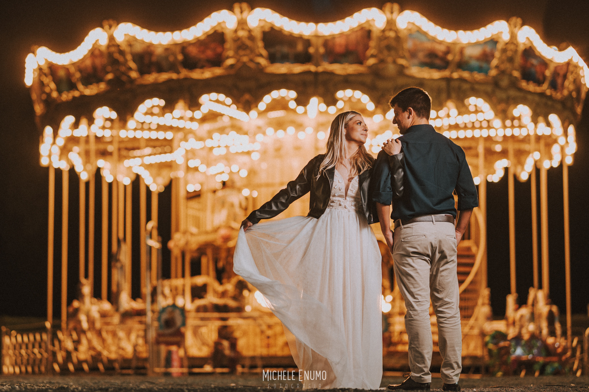 Veja o ensaio pré-casamento de Cassi e Joelsyo, do pôr do sol no Jardim Botânico às fotos noturnas no parque de diversões