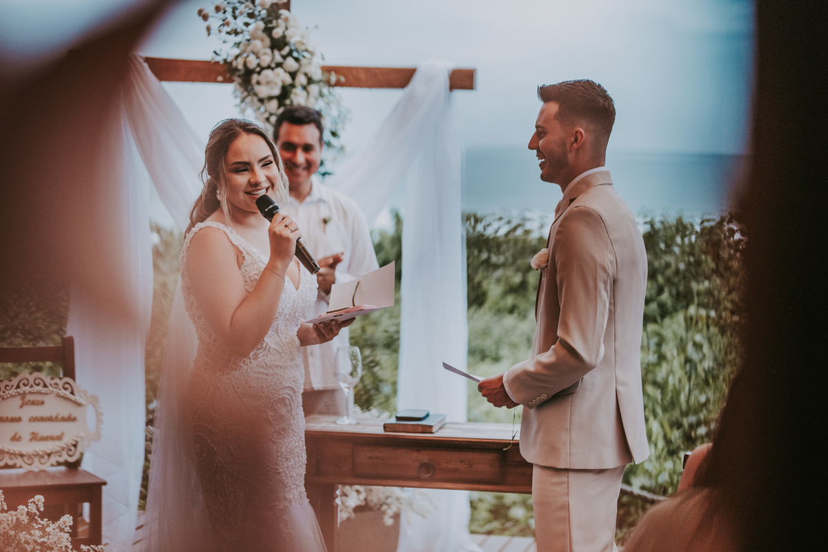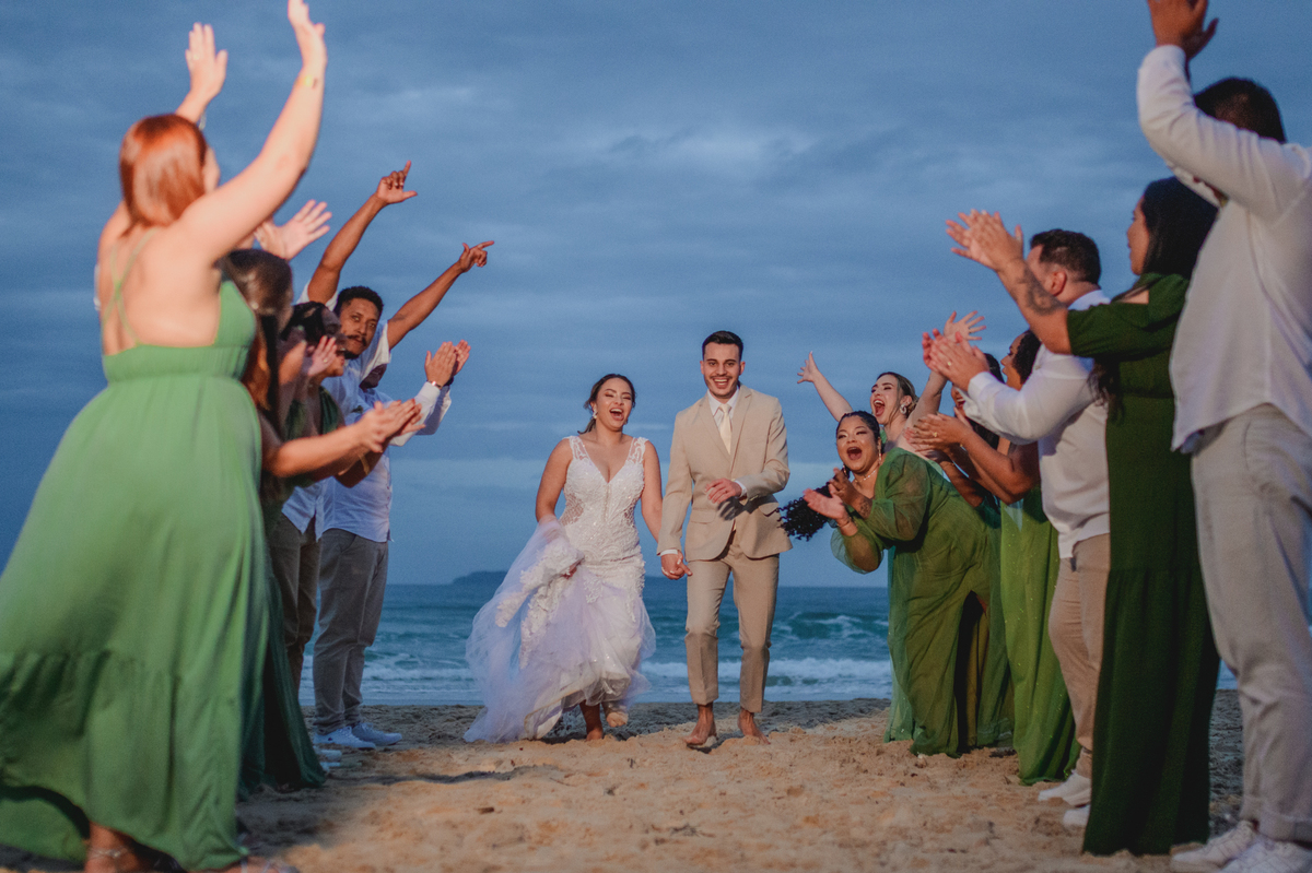 Prévia das fotos do casamento de Mirella e Moisés, realizado na praia de Bombinhas, SC, em 28/04/24.